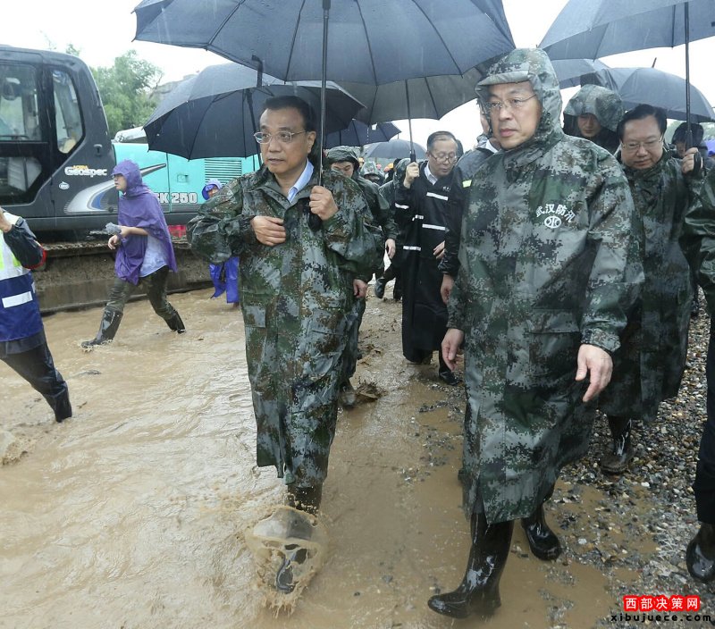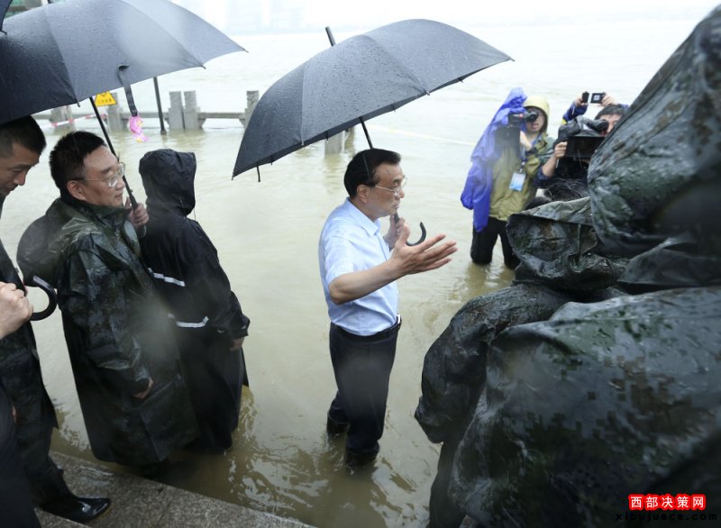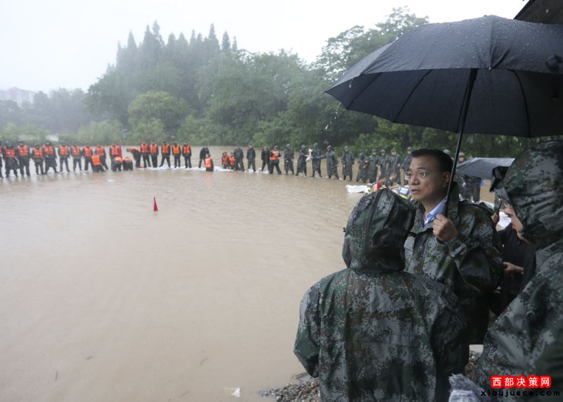 李克強(qiáng)冒大雨在武漢長(zhǎng)江干堤現(xiàn)場(chǎng)指揮搶險(xiǎn)救災(zāi)