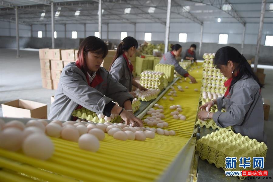 在貴州省畢節(jié)市七星關(guān)區(qū)五里坪村,當(dāng)?shù)剞r(nóng)戶在一個屬于精準扶貧項目的養(yǎng)雞場內(nèi)分揀雞蛋(2015年11月15日攝)。畢節(jié)市自2014年開始“私人訂制”式精準扶貧工作,根據(jù)當(dāng)?shù)刎毨魧嶋H情況為其制定扶貧方案,扶貧變“輸血”為“造血”。黨的十八大以來,以習(xí)近平同志為總書記的黨中央高瞻遠矚、深謀遠慮,以高度的政治感、使命感和責(zé)任感,把扶貧開發(fā)工作提升至治國理政新高度,廣泛凝聚社會各界力量,推進實施精準扶貧方略,為到2020年全面建成小康社會奠定堅實基礎(chǔ)。按照中央部署,通過產(chǎn)業(yè)扶持、轉(zhuǎn)移就業(yè)、易地搬遷、政策兜底等方式,到2020年將實現(xiàn)7017萬農(nóng)村貧困人口脫貧目標。新華社記者 潘昱龍 攝
