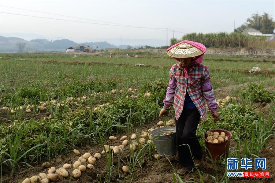 云南省德宏傣族景頗族自治州芒市軒崗鄉(xiāng)農(nóng)民提著采挖好的馬鈴薯準備前去裝箱。當(dāng)?shù)伛R鈴薯每畝產(chǎn)值近6000元,是村民增收的主要途徑之一(2014年3月21日攝)。近年來,云南省大力推進扶貧攻堅,走出了一條整村、整鄉(xiāng)、整縣、整州推進的扶貧開發(fā)新路子。黨的十八大以來,以習(xí)近平同志為總書記的黨中央高瞻遠矚、深謀遠慮,以高度的政治感、使命感和責(zé)任感,把扶貧開發(fā)工作提升至治國理政新高度,廣泛凝聚社會各界力量,推進實施精準扶貧方略,為到2020年全面建成小康社會奠定堅實基礎(chǔ)。按照中央部署,通過產(chǎn)業(yè)扶持、轉(zhuǎn)移就業(yè)、易地搬遷、政策兜底等方式,到2020年將實現(xiàn)7017萬農(nóng)村貧困人口脫貧目標。新華社記者 胡超 攝