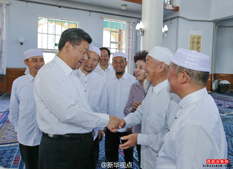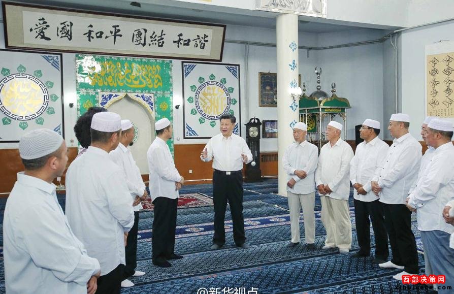 新華網(wǎng)北京7月19日電習(xí)近平總書記19日上午來(lái)到寧夏回族自治區(qū)銀川市新城清真寺了解宗教活動(dòng)開展情況。在禮拜大殿,習(xí)近平與寧夏伊斯蘭教界人士親切交流,通過(guò)他們向廣大穆斯林群眾致以親切問(wèn)候和良好祝愿。習(xí)近平說(shuō),我國(guó)的各民族和宗教是在5000多年的文明史中孕育發(fā)展起來(lái)的,只有落地生根才能生生不息。習(xí)近平希望大家繼續(xù)發(fā)揚(yáng)愛(ài)國(guó)愛(ài)教傳統(tǒng),在脫貧致富奔小康的道路上發(fā)揮積極作用。在場(chǎng)的伊斯蘭教界人士表示,將認(rèn)真貫徹落實(shí)全國(guó)宗教工作會(huì)議精神,既念好古蘭經(jīng),又念好致富經(jīng),為國(guó)家發(fā)展?fàn)I造和諧的環(huán)境。(文字:新華社記者霍小光,攝影:新華社記者鞠鵬、李濤據(jù)新華社“新華視點(diǎn)”微博報(bào)道)