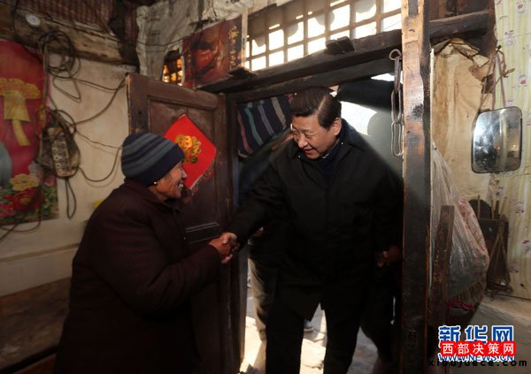 2012年12月29日至30日,中共中央總書(shū)記、中央軍委主席習(xí)近平在河北省阜平縣看望慰問(wèn)困難群眾。這是習(xí)近平在龍泉關(guān)鎮(zhèn)駱駝灣村到困難群眾唐榮斌家看望。新華社記者蘭紅光攝