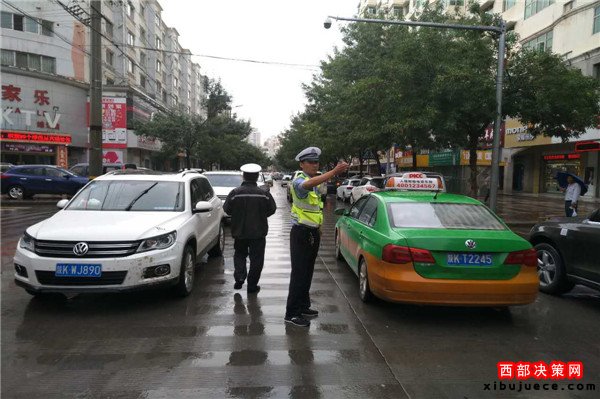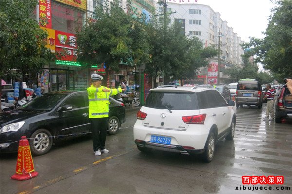 秋雨時節(jié),靖邊交警冒雨堅守崗位