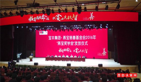 昨天上午,寶豐集團(tuán)·燕寶慈善基金會2016年“燕寶獎學(xué)金”發(fā)放儀式在寧夏銀川市舉行。捐贈儀式上,寶豐集團(tuán)·寧夏燕寶慈善基金會獎勵9.2萬名學(xué)子,發(fā)放獎學(xué)金2.64億元,新增受助學(xué)生2.6萬人。