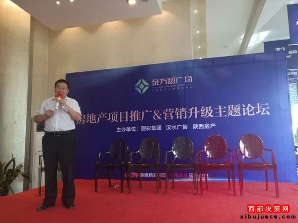由陜西麗彩實(shí)業(yè)集團(tuán)、陜西漢水廣告文化傳媒有限公司、《陜西房產(chǎn)》共同主辦的“房地產(chǎn)項(xiàng)目推廣與營(yíng)銷(xiāo)升級(jí)主題論壇”,于2016年9月8日下午在咸陽(yáng)金方圓廣場(chǎng)項(xiàng)目營(yíng)銷(xiāo)中心圓滿舉辦。兩輪的嘉賓對(duì)話結(jié)束后,麗彩集團(tuán)總裁高彥生先生代表郁鵬董事長(zhǎng)登臺(tái)演講,他側(cè)重對(duì)論壇成果進(jìn)行了總結(jié)和點(diǎn)評(píng)。(見(jiàn)下圖)