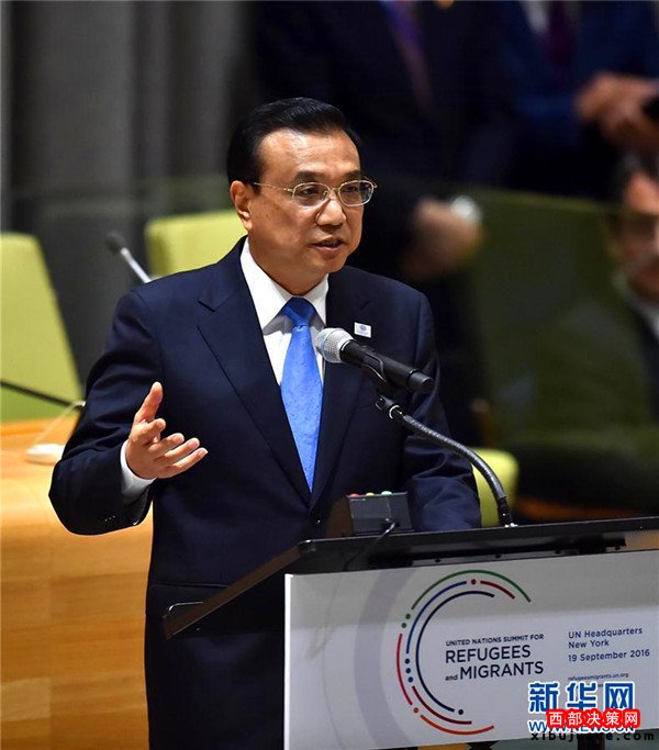 國務(wù)院總理李克強當(dāng)?shù)貢r間19日上午在紐約聯(lián)合國總部出席第71屆聯(lián)大解決難民和移民大規(guī)模流動問題高級別會議并發(fā)言。