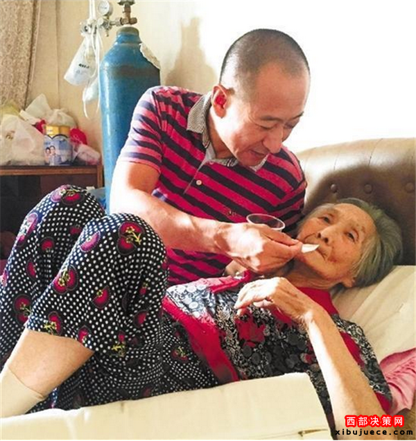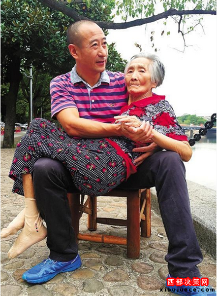 張永康為母親所做的事,鄰居早就看在眼里。他們常能看到這樣的情形:兒子小心翼翼地抱著母親從四樓下來,保姆拿著一把椅子跟在身后。雖然老人體重很輕,但從四樓抱到一樓,51歲的兒子還是氣喘吁吁。