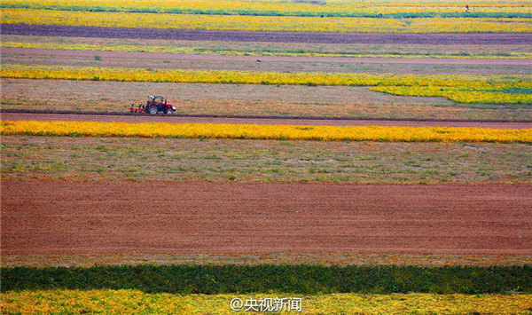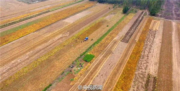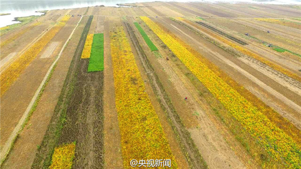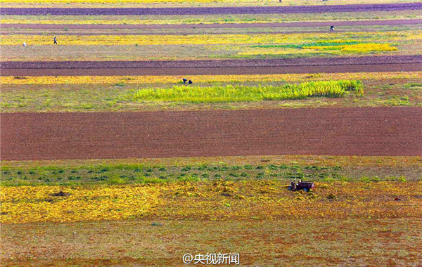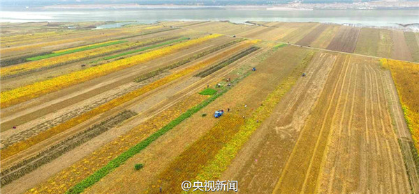 山西黃河灘涂地豐收 “七彩畫廊”綿延百里