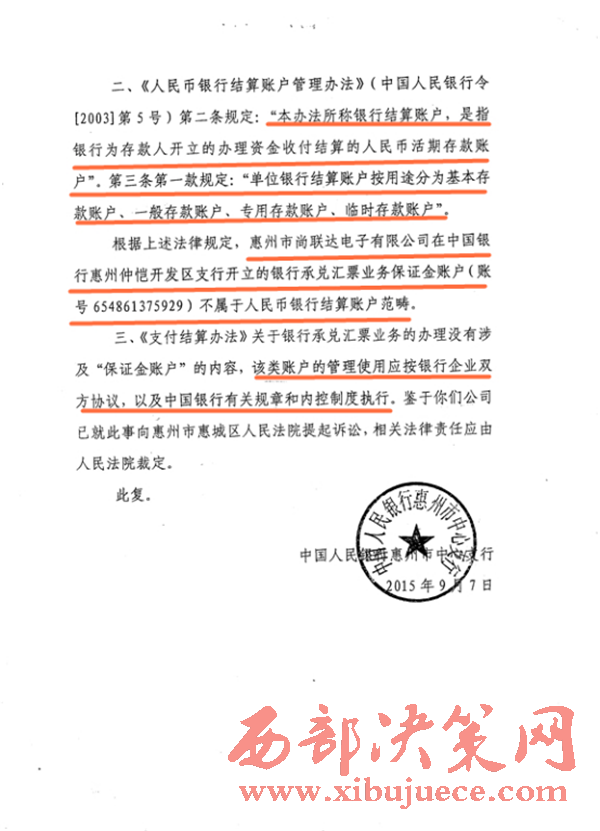 (人行惠州分行一審向法院出具的《復(fù)函》)