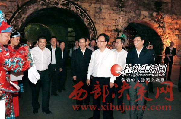 景俊海一行還來到正陽東巷歷史文化街區(qū)進(jìn)行調(diào)研。經(jīng)過修繕改造后的正陽東巷歷史文化街區(qū),青磚黛瓦、古色古香,夜晚大紅燈籠高高掛起,許多中外游客徜徉其間,仿佛有種時光穿梭之感。景俊海一行沿著古樸的巷子,認(rèn)真聽取了關(guān)于東巷改造情況介紹,并饒有興趣地參觀了保護(hù)修繕后的馬啟邦舊居、岑氏公保弟舊址等。他還登上恢復(fù)重建的桂林逍遙樓,一邊參觀一邊聽取逍遙樓的歷史典故、重建情況等介紹,對桂林市委、市政府實施“尋找桂林文化的力量,挖掘桂林文化的價值”戰(zhàn)略,精心設(shè)計、挖掘和保護(hù)桂林歷史文化表示充分肯定。景俊海一行還前往愚自樂園法國地中海俱樂部桂林度假村、“兩江四湖”環(huán)城水系工程、靖江王府、臨桂新區(qū)“一院兩館”(桂林大劇院、桂林博物館、桂林圖書館)、桂林崇華中醫(yī)文化街等文化項目進(jìn)行調(diào)研。