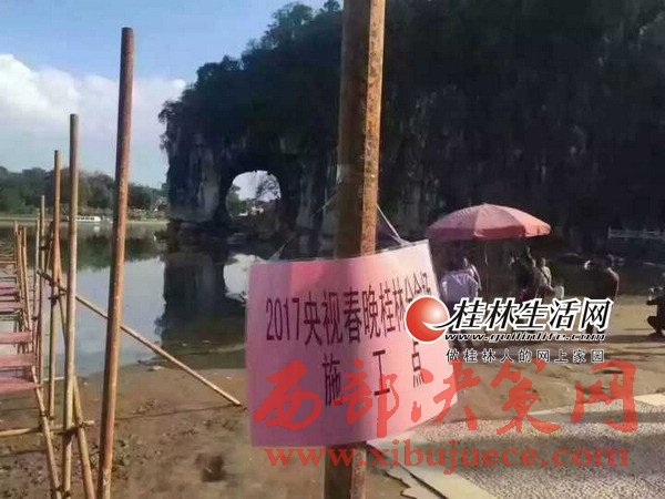 為了真正體現(xiàn)東西南北中,全民大聯(lián)歡,2017年央視春晚延續(xù)2016年春晚特色,特別設(shè)置了東西南北四大分會場,桂林憑借秀美的山水風(fēng)光和厚重的歷史文化底蘊,被確定為2017年央視春晚南方分會場。17日上午,景俊海一行來到2017年央視春晚桂林分會場外景地象山景區(qū)。象鼻山被薄霧籠罩,如夢似幻,漓江煙波渺渺,美不勝收,山水和諧相融構(gòu)成了中國南方最具代表性的自然美景。從11月12日起,春晚桂林分會場舞臺搭建工作已經(jīng)進(jìn)場,工人正在用一根根鋼管搭建水上舞臺。