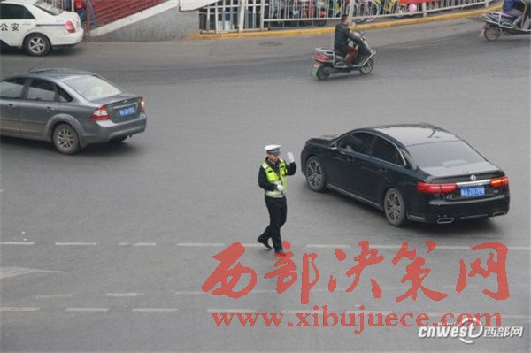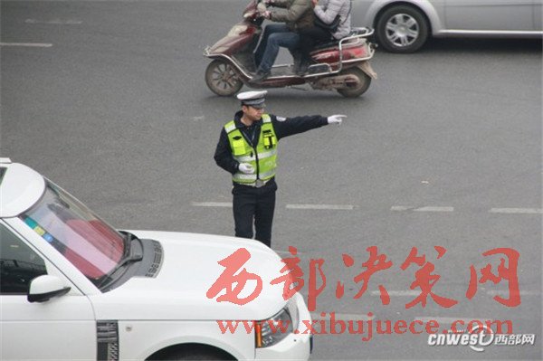 周日(20日)早高峰剛過,小寨十字上的交警正在示意由西向北行駛的車輛左轉(zhuǎn)。