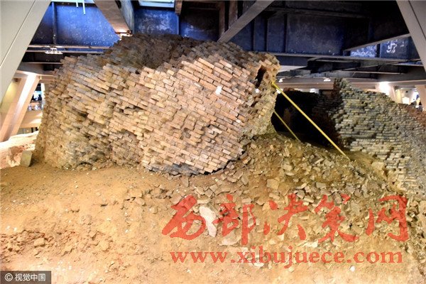 而就在游客身邊的玻璃墻上,赫然寫著“保護(hù)遺址,請勿拋物”8個大字。