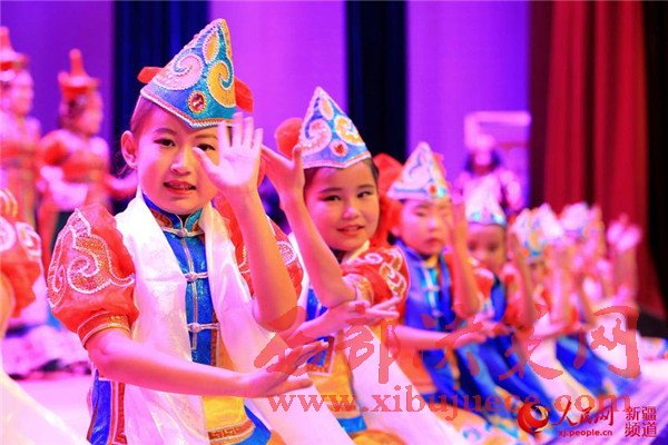 11月22博湖縣“祖魯節(jié)”晚會現(xiàn)場,小朋友們表演少兒舞蹈《薩吾爾登之韻》。