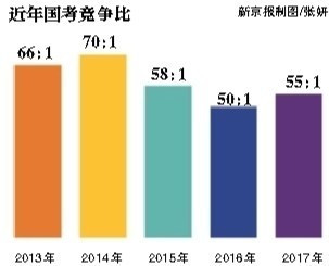 從招錄比看,平均55人競爭1個崗位。其中,競爭最激烈的崗位為民盟中央辦公廳“接待處主任科員及以下”一職,在截至報名結(jié)束前半小時競爭比就達9837:1,超過2013年度國考最熱職位的9411:1,創(chuàng)下歷史新高。