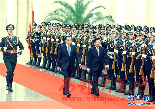 11月28日,國務(wù)院總理李克強在北京人民大會堂同來華進行正式訪問的老撾總理通倫舉行會談。這是會談前,李克強在人民大會堂北大廳為通倫舉行歡迎儀式。