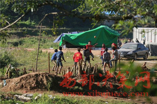 據(jù)邊民張賽亞稱,20日當(dāng)天早晨7點(diǎn)多,村子里聽到槍炮聲,村民們生怕被流彈所傷開始逃跑躲避,他家住在畹町河岸,他看到除了橋上騎著摩托車往中國的村民,河里還有蹚水的村民成群結(jié)隊,他們也就跟著跑到了中國,家里的牛羊那些現(xiàn)在無人照看,村里只留有少部分人,他們出來的不敢回去。在安置點(diǎn)能吃飽睡好,等過一陣子再回去看看。圖為一群緬甸小孩在岸邊踢足球。