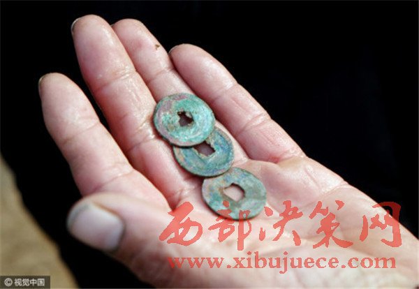 “我找到了一大串。”一村民歡呼。水里淘了淘,瞬間黑色的淤泥變成了十幾個(gè)銅錢。
