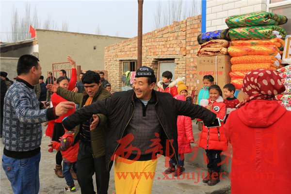 “我‘親戚’的女兒結婚,這是大喜事!”一大早,博湖縣委書記董斌就來到巴哈爾古麗·吾斯曼家賀喜。婚禮上,董斌向“親戚” 巴哈爾古麗·吾斯曼及新人送來了祝福,送上禮金,并且表示婚禮辦得熱鬧喜慶,各族群眾互相走動,互相拜訪,像一家人一樣其樂融融。