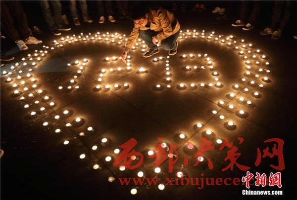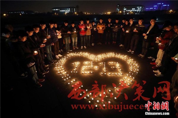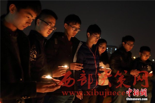 12月12日晚,在第三個國家公祭日前夜,主題為“愿逝者安息,為生者祈福”的燭光祭活動在南京東南大學(xué)九龍湖校區(qū)內(nèi)舉行,來自該校機(jī)械工程學(xué)院的大學(xué)生們點(diǎn)燃蠟燭,擺放成心形和1213字樣,為南京大屠殺死難者集體默哀,寄托哀思。
