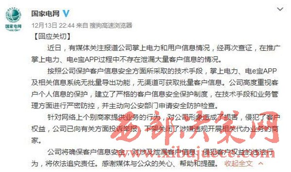 國(guó)家電網(wǎng)回應(yīng)泄露千萬用戶信息問題