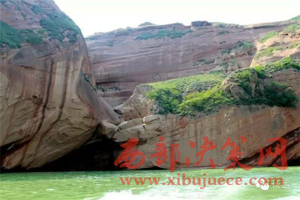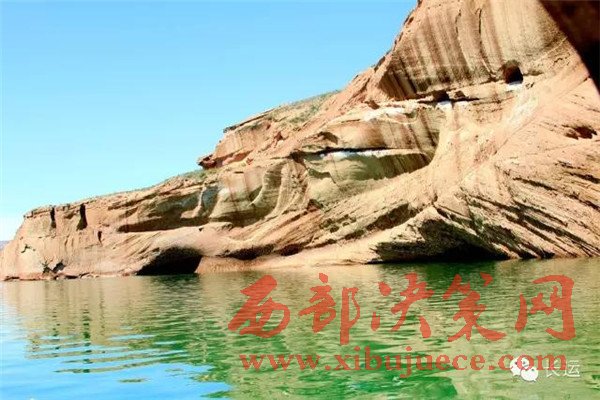 靖邊八景之一的“紅崖曉鏡”就在現(xiàn)在的水上丹霞的位置。靖邊縣志記載,“在杜家大臺(tái)兩岸,紅峽對(duì)峙,中留一線,曉日初升,恍是高樓仙境”。這里過(guò)去叫草溝灣,曾是水草豐美,水鳥棲息,水清如鏡,兩岸赤壁對(duì)峙,為靖邊的一大景觀。