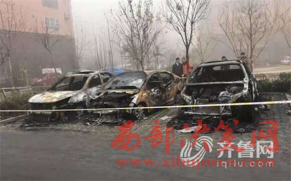 早晨六七點(diǎn)鐘,有居民發(fā)現(xiàn),停在小區(qū)樓下的幾輛汽車著火了。小區(qū)居民表示,當(dāng)時聽見響,還以為撞車了,一看原來是車著了,趕緊喊救火。