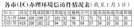記者從我省環(huán)境保護(hù)督察巡查工作領(lǐng)導(dǎo)小組辦公室了解到,截至2017年1月3日,中央第六環(huán)境保護(hù)督察組共轉(zhuǎn)交我省環(huán)境信訪問題1309件。截至1月3日18時(shí),全省按辦理期限已經(jīng)辦結(jié)并公布1198件,辦結(jié)率91.5%。其中寶雞、延安、韓城市已經(jīng)全部辦結(jié)。