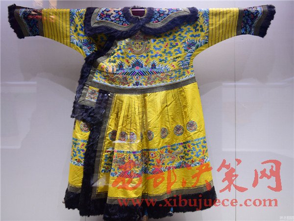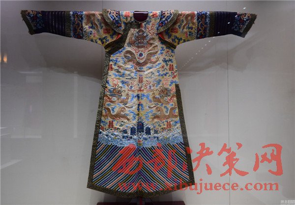 2017年01月05日,遼寧省沈陽市,沈陽故宮博物院舉行“錦繡華彩—院藏清宮織繡展”,清朝皇帝冬季朝袍首次亮相。沈陽故宮是中國僅存的兩大古代皇家宮殿建筑群之一,為清朝初期努爾哈赤和皇太極的宮殿,距今近400年歷史,貯藏近20萬件清宮御用物品和內(nèi)府秘籍。清明黃江綢繡金龍出鋒夾朝袍。