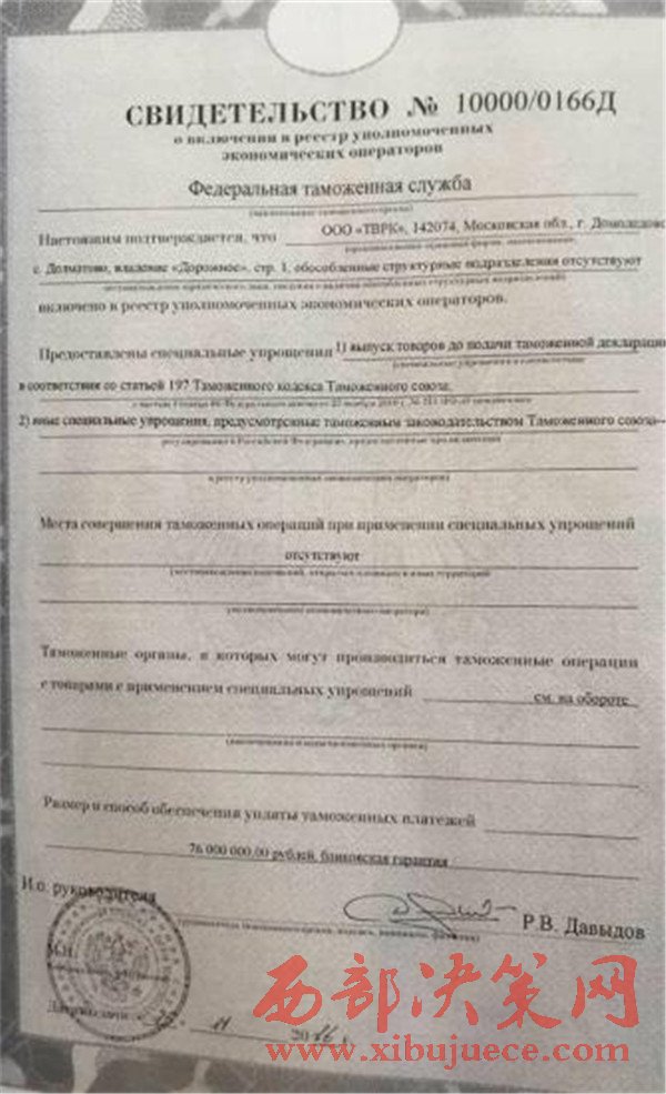 西部決策網訊(王博 通訊員 焦麗)2017年1月13號北京時間下午16點莫斯科時間上午11點,跨境電商關天之窗俄羅斯合伙人平臺跨境電商中國購創(chuàng)始人關鑫一行與俄羅斯庫爾干自治州相關機構負責人米哈伊爾羅維奇,羅馬,薩沙達成協議,從中國陜西省西安港直達俄羅斯的貨物允許在俄羅斯邊境自治州庫爾干海關進行清關,莫斯科官方給庫爾干政府相關機構的批復函件中標注中國西安港到達俄羅斯庫爾干海關為全品類清關。
