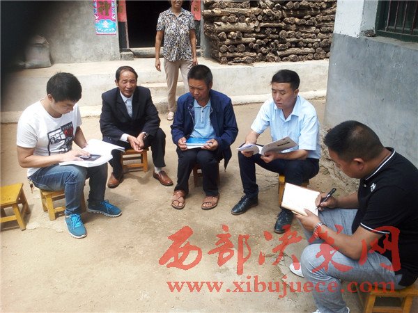 王存山(左三)會(huì)同區(qū)扶貧局干部走訪(fǎng)貧困戶(hù)社員。