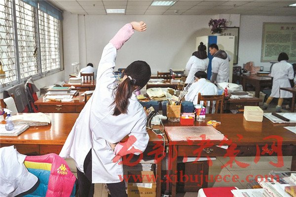 古籍修復(fù)工作現(xiàn)在仍是冷門行業(yè),修復(fù)師們頭上頂著“大國工匠”的光環(huán),背后卻有很多的艱辛。古書拆裝過程中會(huì)遇到大量陳年的灰塵、蟲卵等,打噴嚏、犯鼻炎、過敏等現(xiàn)象時(shí)有發(fā)生;保持伏案姿勢(shì)一整天,幾乎所有的修復(fù)師都有頸椎和腰椎疾病。而古籍修復(fù)從業(yè)人員的待遇并不高,對(duì)年輕人缺乏吸引力。每年會(huì)有許多實(shí)習(xí)生來到中心實(shí)習(xí),但實(shí)習(xí)結(jié)束,不少學(xué)生就離開這個(gè)行業(yè),能夠留下來的,寥寥無幾,更多人把它當(dāng)作副業(yè)或者興趣愛好。
