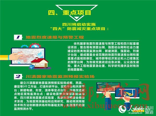 其中,已啟動實施的“地震烈度速報與預(yù)警工程”,由國家項目和地方項目構(gòu)成,國家項目在川投資1.5億元左右。該項目將完善全省地震監(jiān)測臺網(wǎng),建成覆蓋全省的地震烈度速報臺網(wǎng)和覆蓋重點監(jiān)視防御區(qū)、城市群等經(jīng)濟發(fā)達和人口密集區(qū)的預(yù)警臺網(wǎng),提供分鐘級的地震烈度、地震速報和秒級地震預(yù)警信息服務(wù),為地震科學(xué)和預(yù)測預(yù)報研究提供豐富的基礎(chǔ)觀測數(shù)據(jù)。