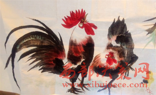 我畫的公雞被公雞鹐了:畫雞已經(jīng)成了他每天的必修課,2004年12月的一天,他下班回家吃過晚飯,到后院抱了一只公雞到屋里準備觀察做畫,他把公雞放在地上,由于新環(huán)境公雞的頭上下左右窺視看看四周。突然,公雞先是跳到了床上,然后從床上跳到箱子上,從箱子上飛向掛在墻上以前畫的雄雞,鹐了畫上雄雞的脖子。它把我畫的公雞誤當成同類了,它向同類發(fā)起了攻擊,卻沒有發(fā)現(xiàn)那是我畫的畫??磥砦耶嫷碾u同類已經(jīng)無法分辨出來了,我要發(fā)誓必須努力的繼續(xù)畫下去。他非常激動的介紹到。