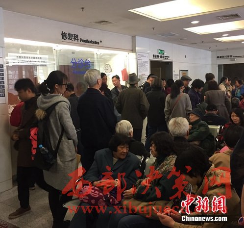 圖為市民們在北京大學(xué)口腔醫(yī)學(xué)院大廳排隊(duì)掛號。