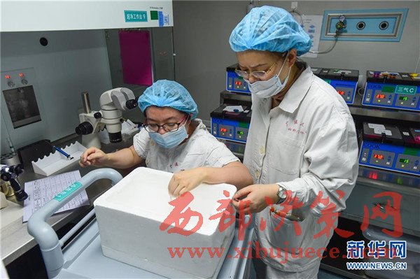 3月20日,廣醫(yī)三院胚胎實(shí)驗(yàn)室人員杜紅姿(右)和陳仕萍核對(duì)從冷凍庫里提取的胚胎。