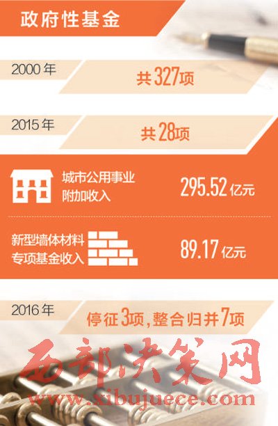經(jīng)過幾輪清理規(guī)范后,到2015年,政府性基金已從2000年的327項(xiàng)減少到28項(xiàng)。2016年,國家進(jìn)一步清理收費(fèi)基金,停征價格調(diào)節(jié)基金等3項(xiàng)政府性基金,整合歸并散裝水泥專項(xiàng)資金等7項(xiàng)政府性基金。特別是針對小微企業(yè),加大了降費(fèi)力度。