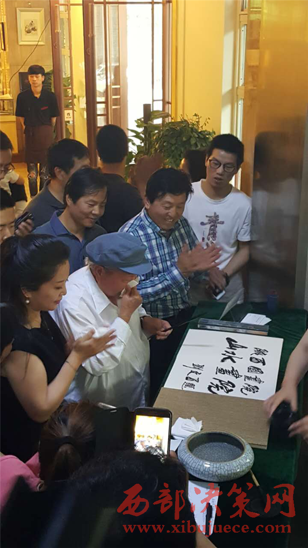 當(dāng)李老師談起書(shū)法來(lái),兩眼炯炯有神,自放異彩,書(shū)法已融入他的生命。當(dāng)我們走進(jìn)李老師的工作室,練習(xí)的作品如一座小山,筆架上的毛筆各種型號(hào)應(yīng)有盡有,裝墨汁的缽盂,很是夸張,不敢說(shuō)墨池,那樣有點(diǎn)浮夸,有點(diǎn)像關(guān)中人吃面的老碗那樣大的缽盂。沒(méi)有上過(guò)大學(xué)的他,也許是對(duì)傳統(tǒng)文化的摯愛(ài),也許是身邊的朋友影響了他。