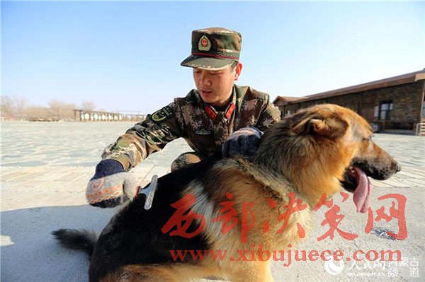 隨著天氣轉(zhuǎn)暖,警犬開始換毛,訓導員每天要給警犬梳毛。