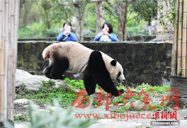 3月24日,海歸大熊貓“寶寶”結束了回國后為期一個月的隔離檢疫生活,入住中國大熊貓保護研究中心都江堰基地盼盼園新家并與公眾見面。