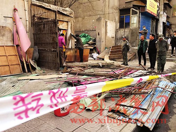 昨日下午5時許,記者在北火巷小區(qū)南口看到,數(shù)名工人正在對沿街違章建筑進行拆除。小區(qū)11號樓一沿街人行道上,拉起有數(shù)十米長的警戒線,警戒線內被拆下的防盜網招牌等雜物堆積在一旁等待處理。據(jù)小區(qū)住戶說,該區(qū)域被個別經營戶長期“占領”擺攤經營的現(xiàn)象終于得到了改善。