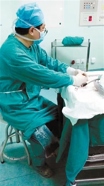 3月17日,正在手術臺上工作的袁家天突發(fā)急性輸尿管結石,出現(xiàn)劇烈疼痛,他讓手術室護士打了一針強效止痛針后,才堅持把手術做完。后來,在妻子的勸導下,他在泌尿外科做了輸尿管鏡碎石取石手術。就在手術前,他還在詢問第二天的手術安排,并且不顧勸說,堅持要親自主刀,“好多都是老病人,我也答應人家親自主刀,而且患者病情危急,不能耽誤!”