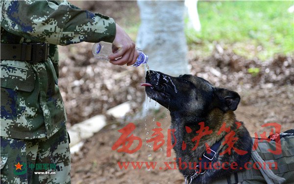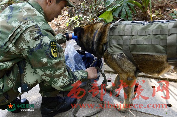 “好樣的,晚上給你加菜!”下午5時10分,終于在一處枯草前停了下來,訓(xùn)導(dǎo)員上前翻開遮蓋物,臟物、衣服、手套等一包東西出現(xiàn)眼前,任務(wù)圓滿完成!據(jù)悉,“道海”從2012年服役以來,先后出色完成了緝私、緝毒、軍警聯(lián)勤等20多項機(jī)動任務(wù),多次榮立戰(zhàn)功,受到上級嘉獎表揚(yáng),是名副其實的“功勛犬”。