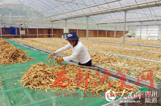 四川省巴中市巴州區(qū)寨子包村金大寨種養(yǎng)合作社的員工正從曬干的川明參中篩選優(yōu)質產(chǎn)品。