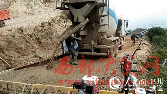 一條平坦寬闊的水泥路正一步步向遠處延伸。沿公路建設工地行進,砌堡坎、填水氹……處處是干部群眾熱火朝天修路的勞動場面。