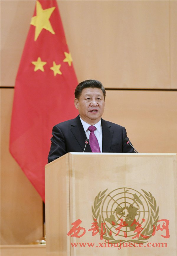 2017年1月18日,國(guó)家主席習(xí)近平在瑞士日內(nèi)瓦萬(wàn)國(guó)宮出席“共商共筑人類命運(yùn)共同體”高級(jí)別會(huì)議,并發(fā)表題為《共同構(gòu)建人類命運(yùn)共同體》的主旨演講。(記者 饒愛(ài)民 攝)