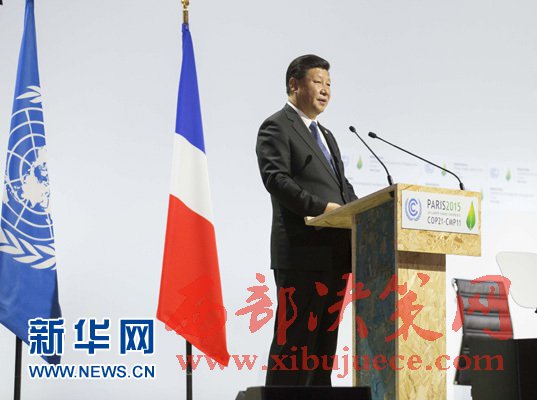 2015年11月30日,國(guó)家主席習(xí)近平在巴黎出席氣候變化巴黎大會(huì)開(kāi)幕式并發(fā)表題為《攜手構(gòu)建合作共贏、公平合理的氣候變化治理機(jī)制》的重要講話。(記者 黃敬文 攝)