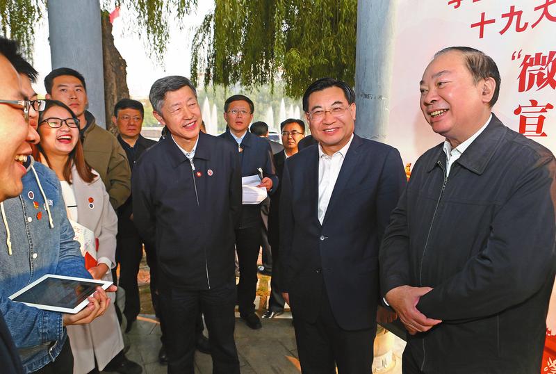 11月5日,中共中央政治局委員、中宣部部長黃坤明來到西安交通大學,就學習領會黨的十九大精神與師生們互動交流。記者張辰攝