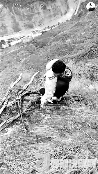 開通直播后,拉博問村里:“這個(gè)平臺(tái)是我修的,能不能用我的名字?”村里同意了,這個(gè)叫做“拉博站”的地方也成為了“懸崖村飛人”拉博直播的主要場(chǎng)景。拉博直播時(shí)蹦蹦跳跳,看的人覺得很危險(xiǎn),他自己不覺得,他說自己從小到大,這個(gè)懸崖村一直就是這樣的。“山上放羊怎么戴護(hù)具啊?如果羊跑出去了,不管什么地形也得給抱回來。”