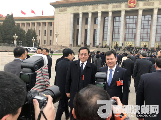 (圖為全國(guó)人大代表張近東在十三屆全國(guó)人大一次會(huì)議上接受記者采訪)