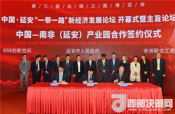 論壇上,還舉辦了中國(guó)-南非(延安)產(chǎn)業(yè)園、中國(guó)-格魯吉亞(延安)產(chǎn)業(yè)園合作簽約暨啟動(dòng)儀式及新經(jīng)濟(jì)項(xiàng)目對(duì)接會(huì),與會(huì)代表圍繞新經(jīng)濟(jì)、新產(chǎn)業(yè)助力城市轉(zhuǎn)型發(fā)展話題作了對(duì)話交流,延安市各縣區(qū)和相關(guān)單位就新經(jīng)濟(jì)項(xiàng)目進(jìn)行了集中簽約。